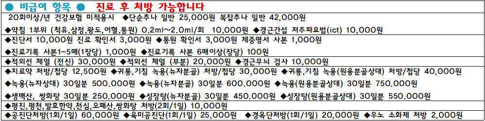 2024년 우노한의원 비급여 진료비 안내
